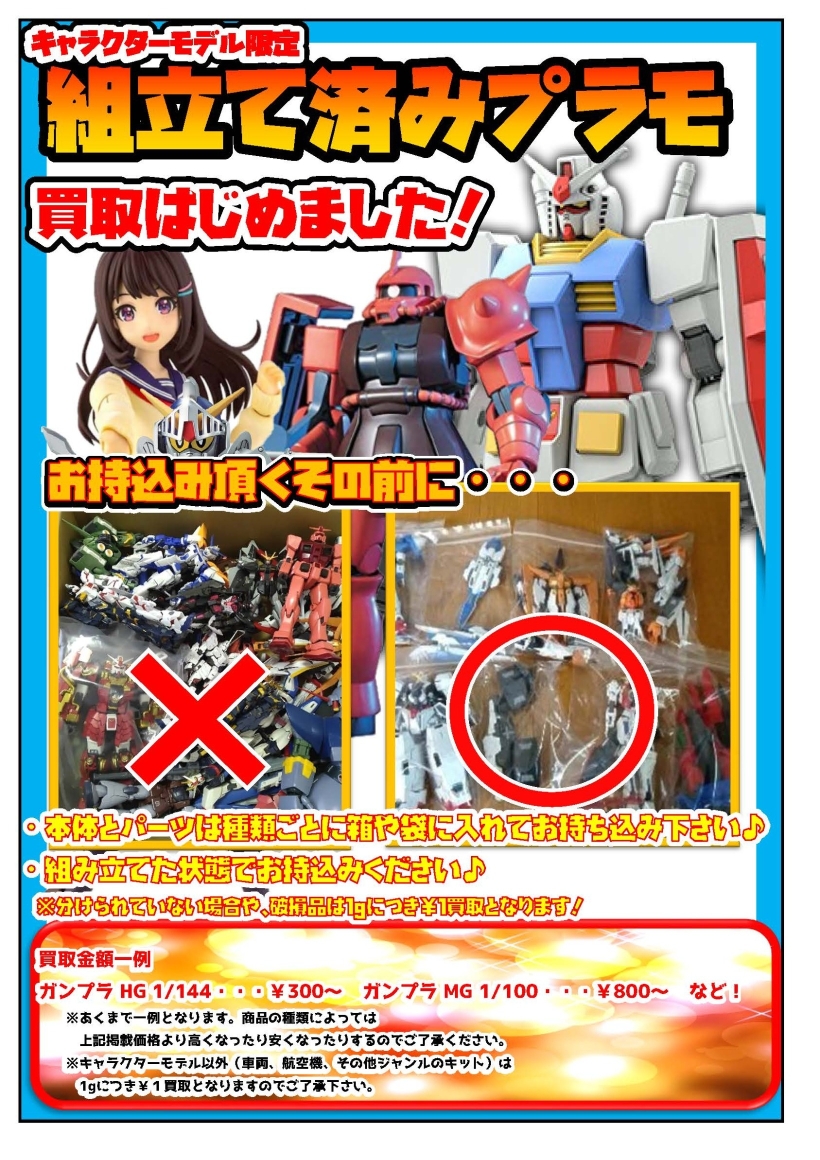 ・未組立のお品物が高価買取対象です。組立済みキットもお売りいただけます。
