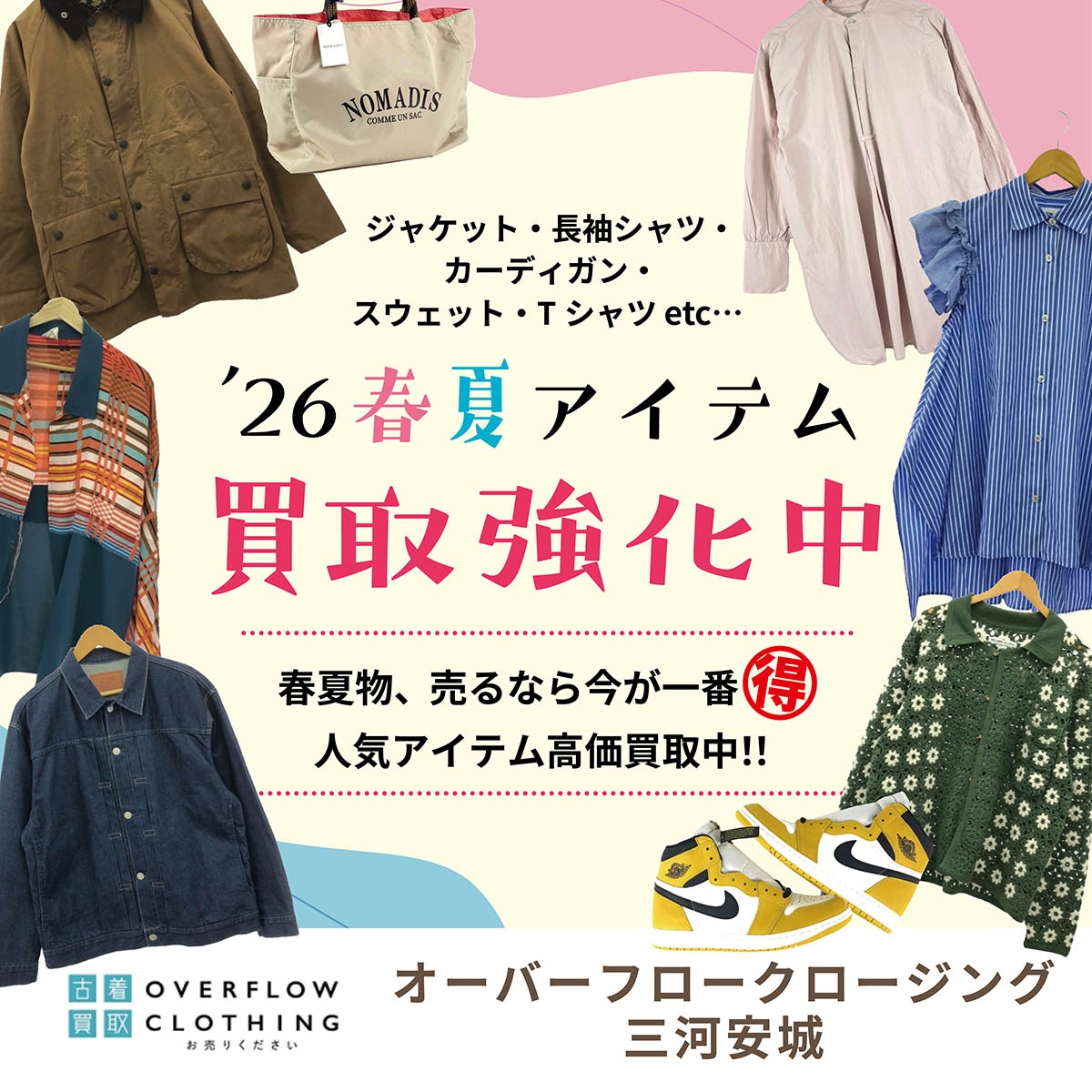 ★2026年1月上旬より〜春夏物ファッション、買取強化キャンペん開催!!一番高く売るチャンスです!!