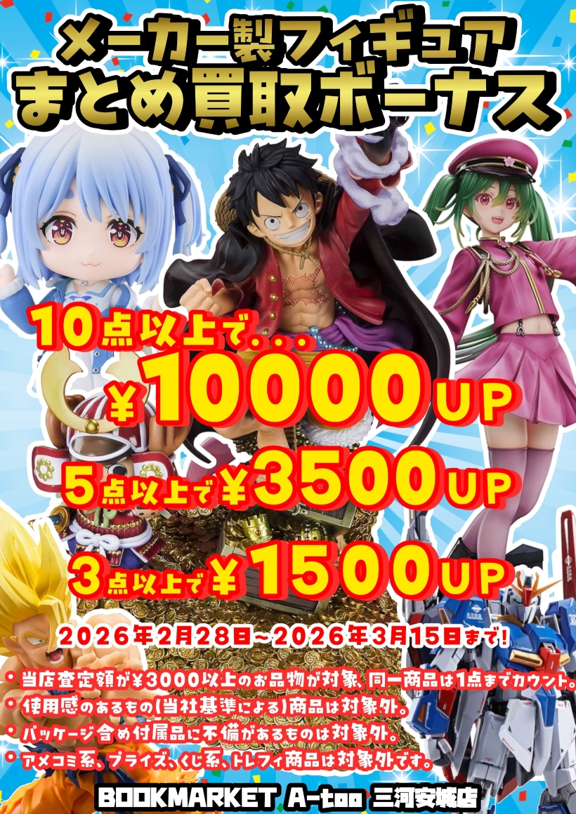 メーカー製フィギュアまとめ買取ボーナス!