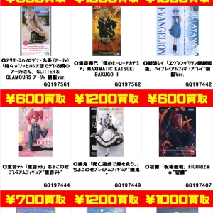 アニメ放送中や人気作品のタイトルを集めました。 ぜひ、お持込みください♬ ※ご注意ください ・他のお品物と混ざっている状態ですと高価買取キャンペーン対象外となります。 ・他のお品物とは分けた状態で、お持ち込み時に 「ホームページを見た」と受付スタッフへお伝えいただきますよう お願いいたします。 ・上記価格は付属品完備美品での上限価格です。商品状態により減額となる場合もございます。 ・在庫状況、市場価格動向により変動する場合もございます。 ・高価買取表記での買取は、同一商品2点までとなります。ご注意ください。 何卒ご了承ください。