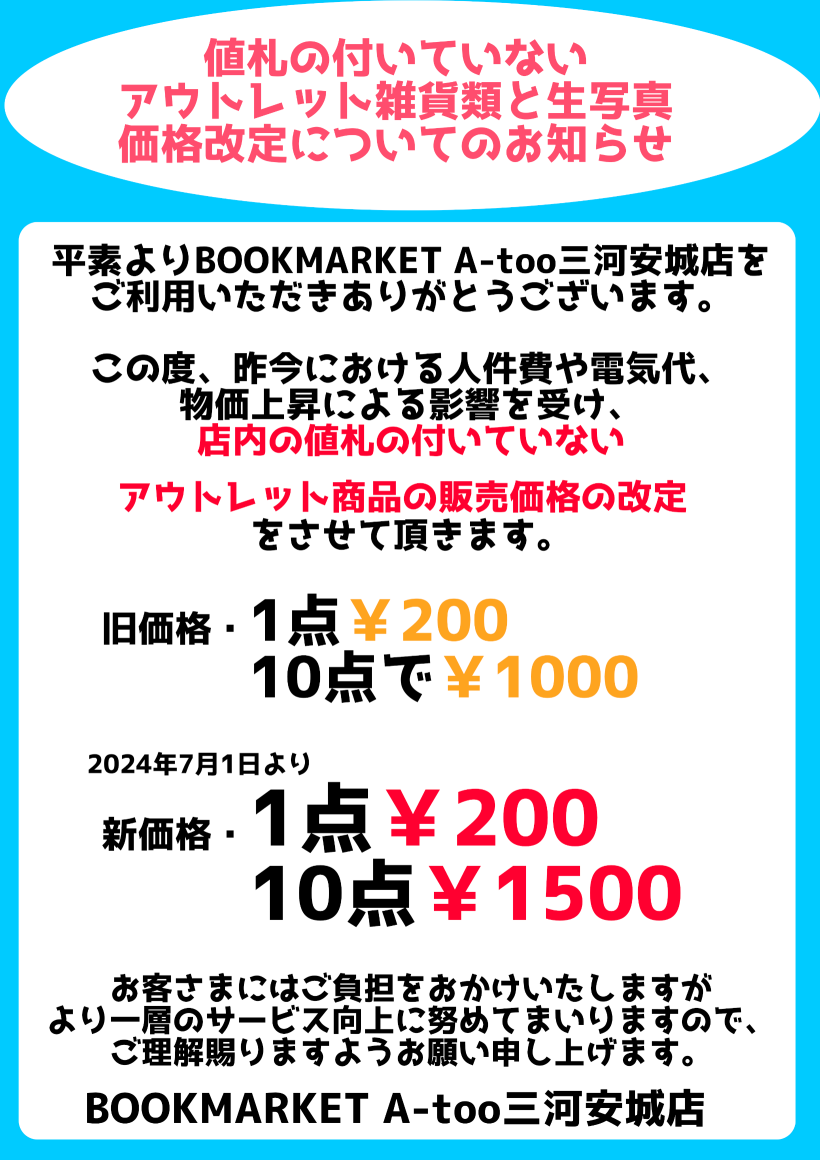 店内アウトレット雑貨・生写真価格改定のお知らせ