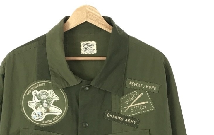 【入荷】 PORTER CLASSIC×OHARIKO MAFIA 長袖シャツ サイズ2(Mサイズ程度) 別注モデル PATCH WORK MILITARY RIPSTOP JACKET OLIVE