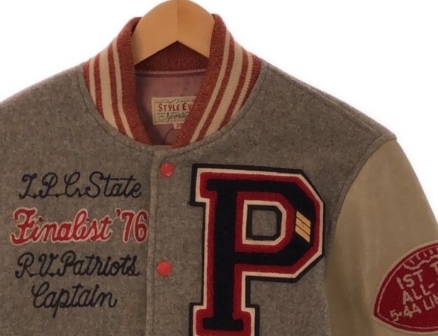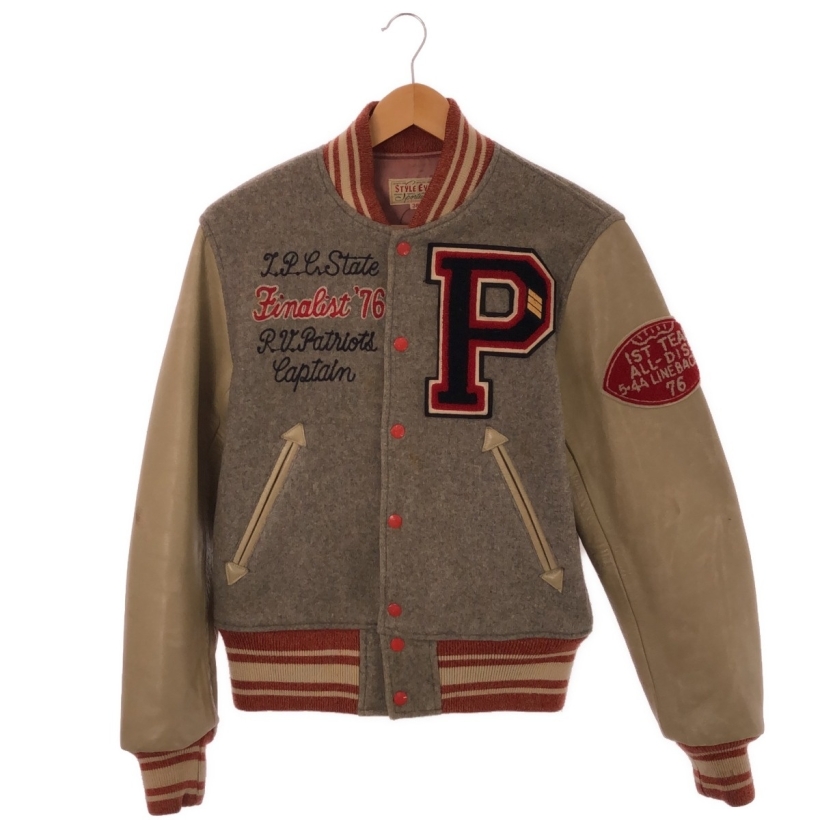 【入荷】STYLE EYES M16446 レザージャケット サイズ38(Mサイズ程度) LEATHER SLEEVE WOOL STADIUM JUMPER GRAY