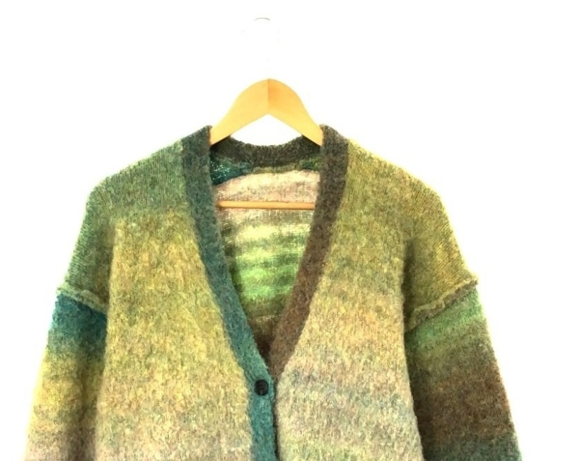 【入荷】MAISON SPECIAL 21212365104 秋冬カーディガン Mサイズ グラデーションループシャギーニットカーデ GREEN/BROWN