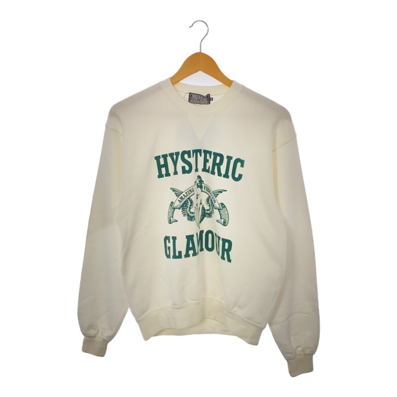【入荷】HYSTERIC GLAMOUR 02221CS01200 スウェット Sサイズ LOGO PRINT AMAIZING VIBRATION SWEAT DIRTY WHITE