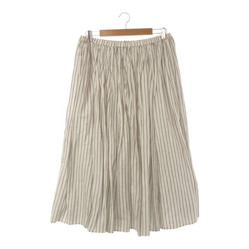 【入荷】JOURNAL STANDARD LUXE 22/SS 22-060-440-2000-2-0 ロングスカート Fサイズ LINEN×COTTON FLARE VOLUME SKIRT ストライプ柄 WHITE