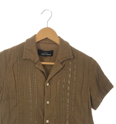 【入荷】COMME DES GARCONS TRICOT TQ-B029 半袖シャツ Sサイズ COTTON TUCK LACE OPEN COLLAR S/S SHIRT BROWN