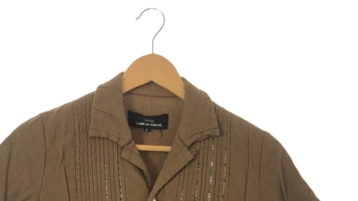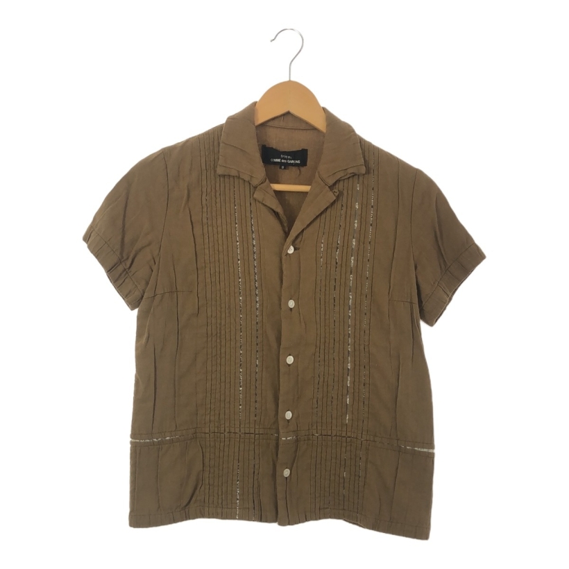 【入荷】COMME DES GARCONS TRICOT TQ-B029 半袖シャツ Sサイズ COTTON TUCK LACE OPEN COLLAR S/S SHIRT BROWN