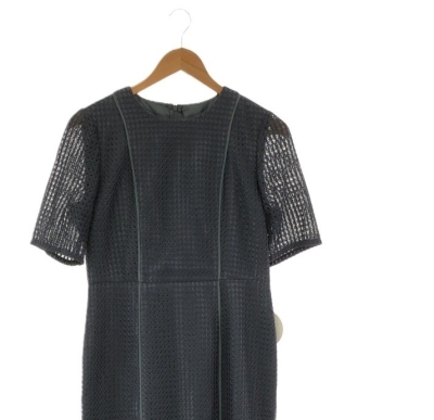 【入荷】KAENE 100715 ワンピース サイズ38(Mサイズ程度) PIPING ALL LACE LONG DRESS S/S GRAY タグ付