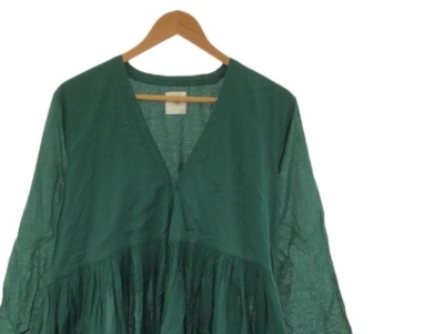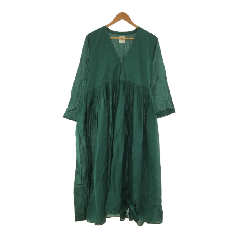 【入荷】MAISON DE SOIL ワンピース サイズ2(Mサイズ程度) INDIA製 COTTON V-NECK GATHER SKIRT L/S ONE-PIECE GREEN