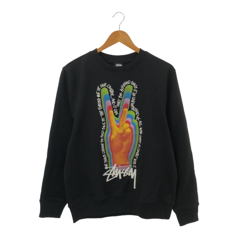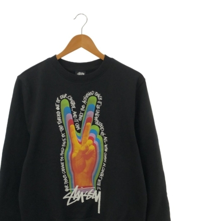 STUSSY 1914662 スウェット Sサイズ PEACE GRAPHIC PRINT CREWNECK SWEAT 裏起毛 BLACK タグ付
