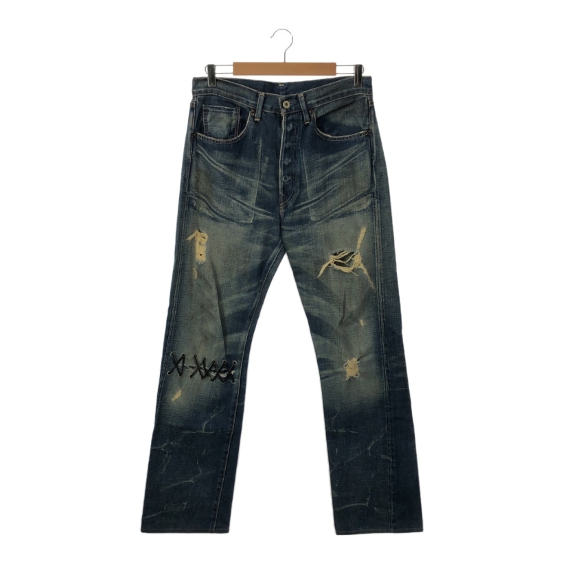【入荷】LEVI'S LOT.44501 デニムパンツ サイズW32 日本製 ペンキステッチ 対戦モデル BIG’E’ DAMAGED STRAIGHT DENIM INDIGO