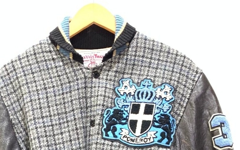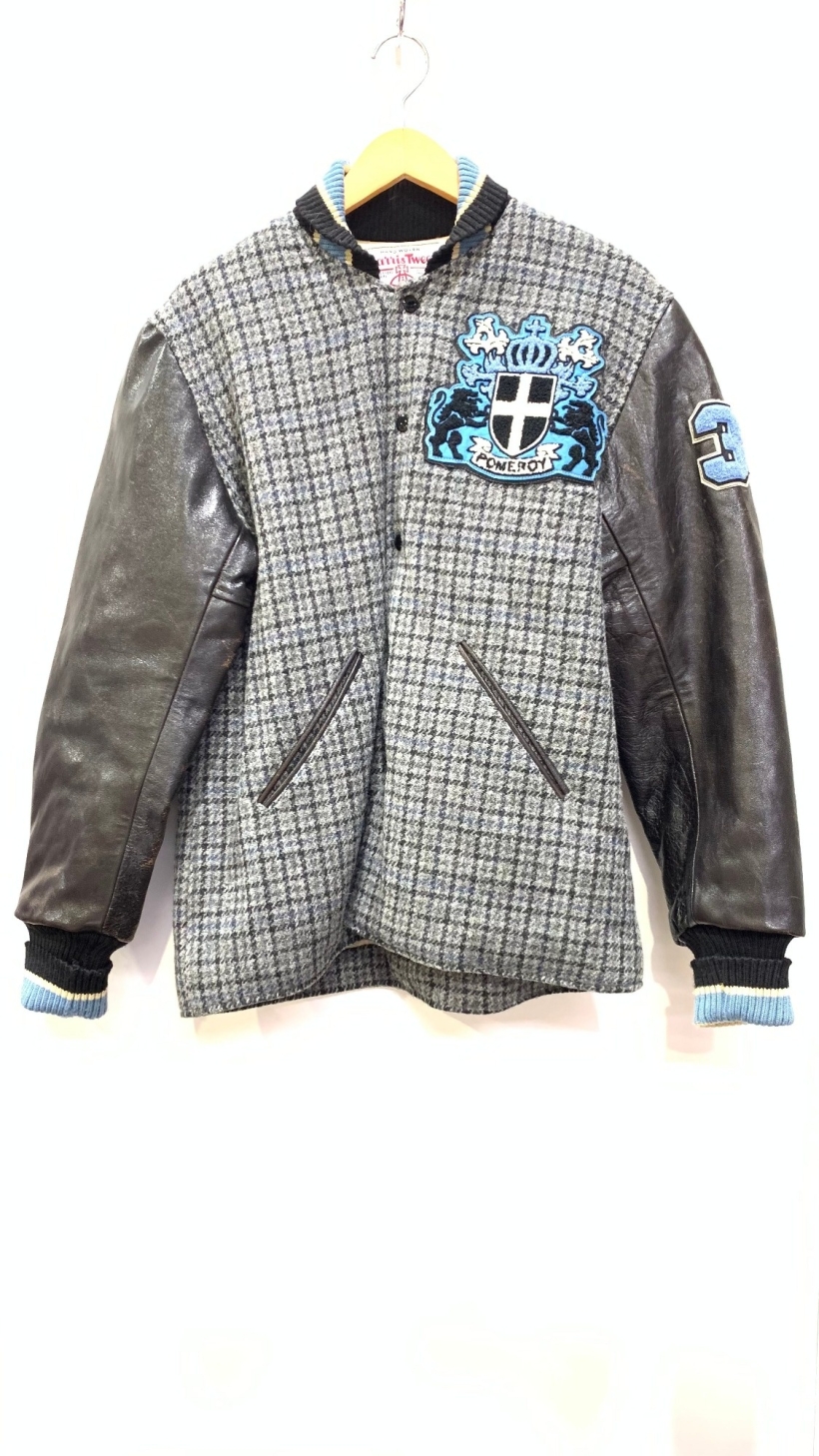 【入荷】東洋×HARRIS TWEED 0769633 レザージャケット サイズ38(Mサイズ程度) 別注モデル HORSE LEATHER SLEEVE SWITCH STADIUM JUMPER チェック柄 BLACK/GRAY