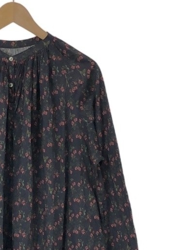 アイテム名 :NO COLLAR GATHER L/S SHIRT イチゴ柄 NAVY