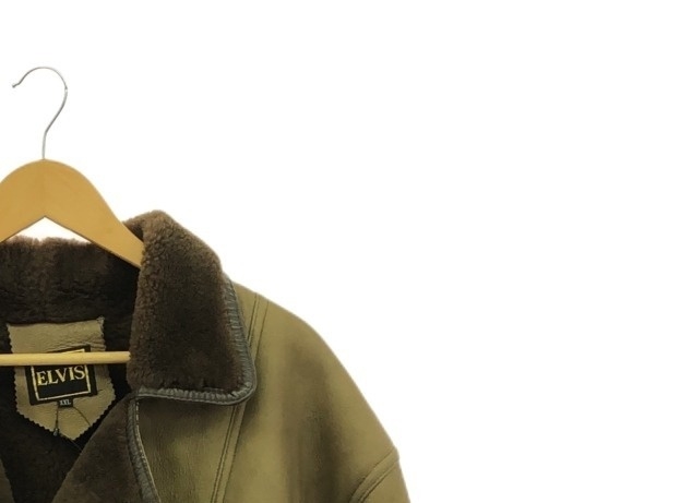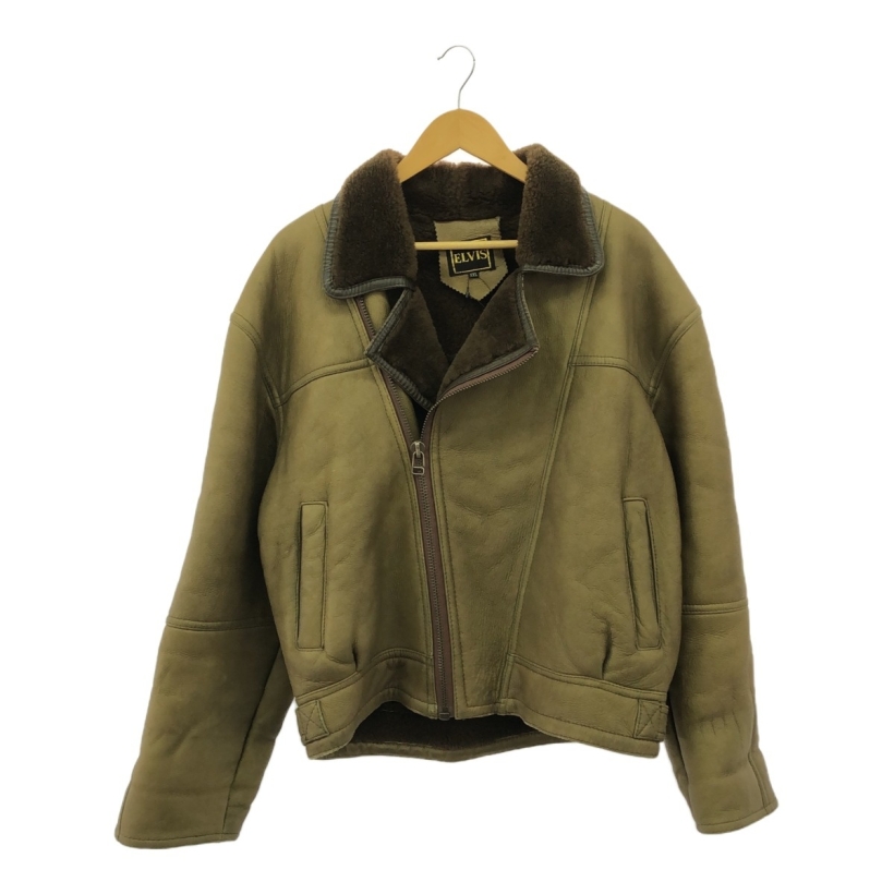 【入荷】ELVIS レザージャケット XXLサイズ REAL MOUTON JACKET 斜ZIP KHAKI/BROWN