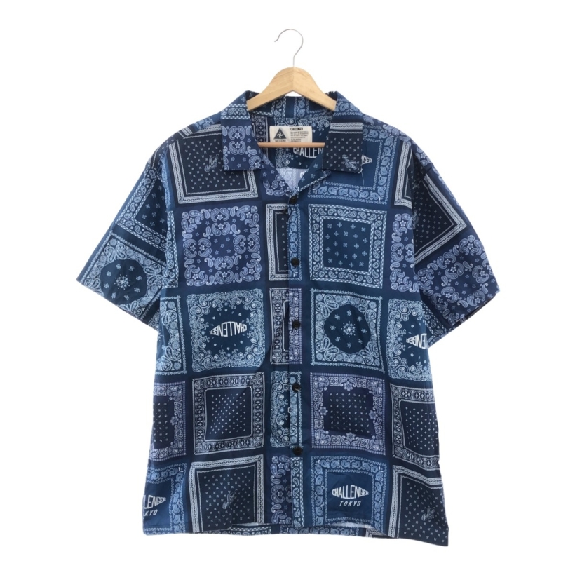 【入荷】CHALLENGER 22/SS CLG-SH 022-005 半袖シャツ Mサイズ OPEN COLLAR S/S BANDANA SHIRT バンダナ総柄 BLUE