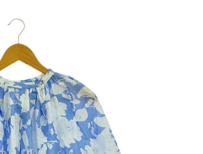 【入荷】MIZUIRO IND 半袖シャツ サイズ不明(表記なし) FLOUR PRINT BALLOON PO S/S SHIRT 花柄 BLUE/WHITE