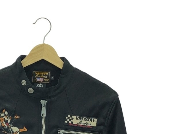 【入荷】VANSON×トムとジェリー ジャケット Mサイズ 別注モデル GRAPHIC EMBROIDERY NYLON RIDERS JACKET BLACK
