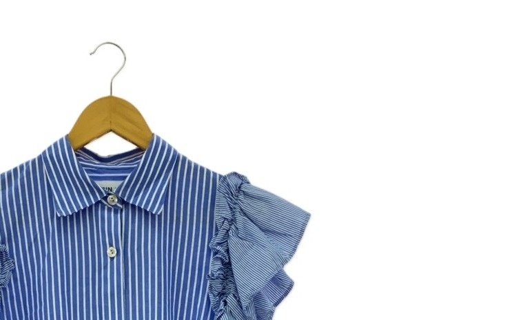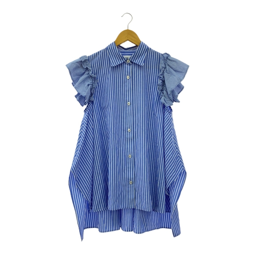 【入荷】HERIN.CYE 530HSM30-2370 半袖シャツ Fサイズ FRILL SLEEVE TOPS ストライプ柄 BLUE/WHITE