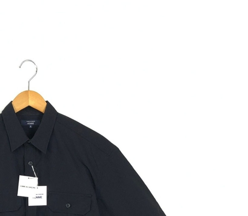 【入荷】COMME DES GARCONS HOMME AD2024 HO-B024-051-1-2 半袖シャツ Sサイズ NYLON TUSSAH REGULAR COLLAR S/S SHIRT BLACK タグ付