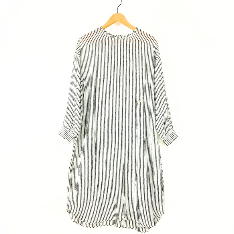 【入荷】MAISON DE SOIL ワンピース サイズ2(Mサイズ程度) LINEN NO COLLAR L/S SHIRT DRESS