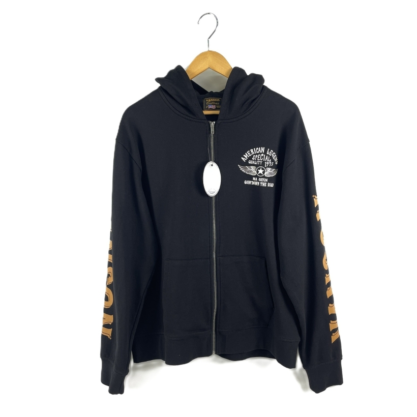 【入荷】VANSON NVSZ-222 パーカー XXLサイズ LOGO PRINT FULL-ZIP PARKA 裏パイル BLACK タグ付
