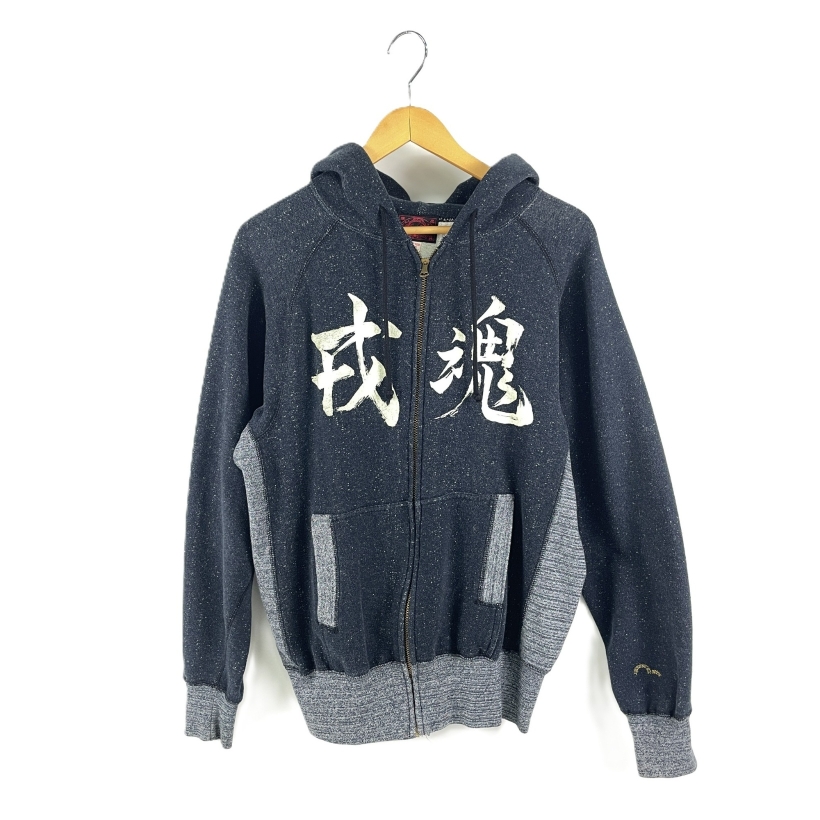 【入荷】EVISU パーカー サイズ40(Lサイズ程度) 戌魂 LOGO ILLUSTRATION PRINT FULL-ZIP PARKA NAVY