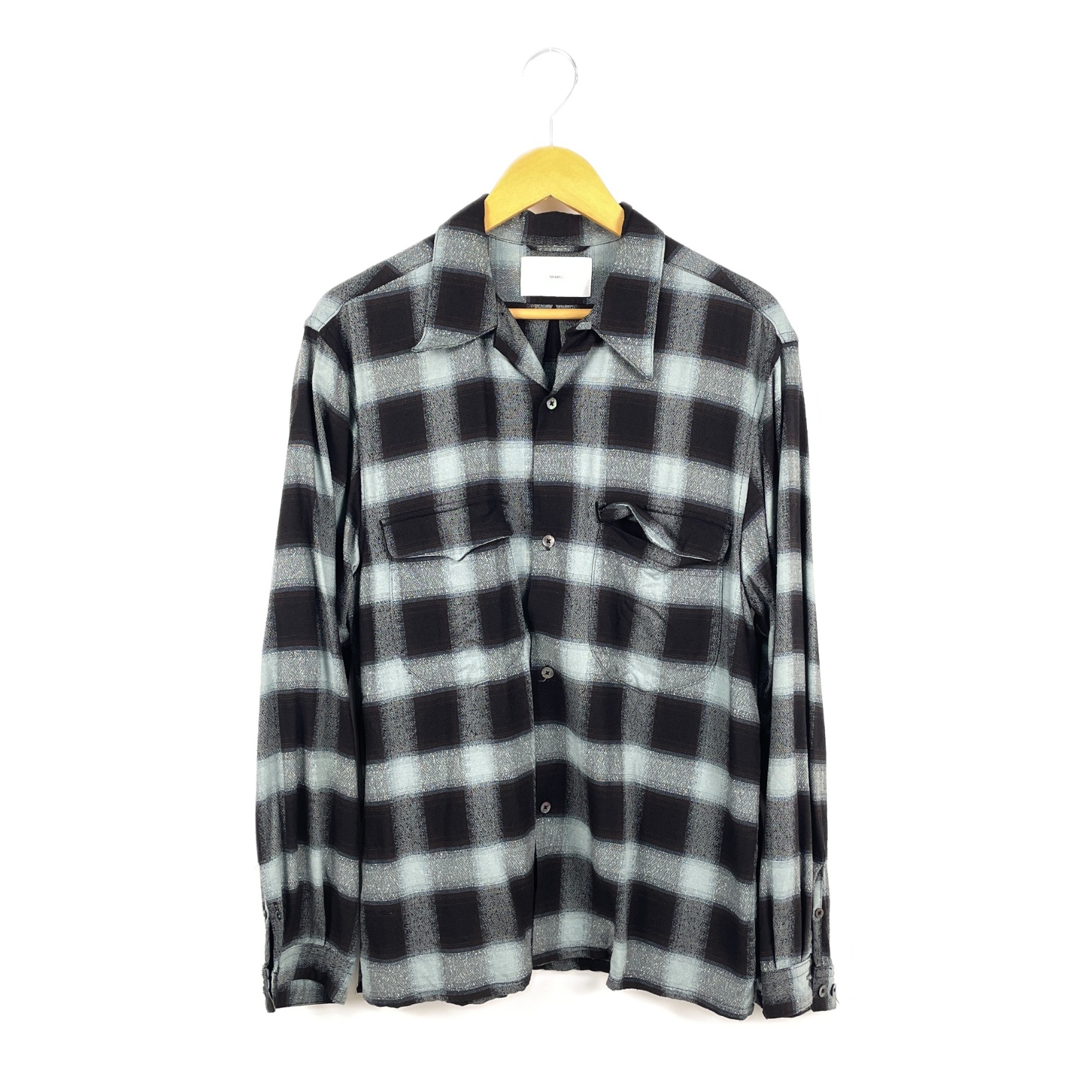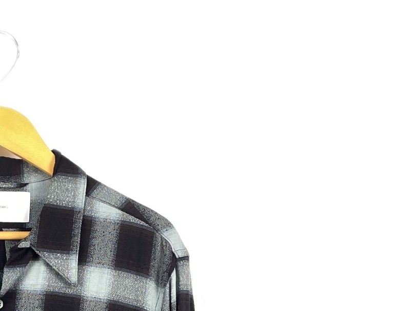 【入荷】SUGARHILL 23SS SH01 長袖シャツ サイズ2(Mサイズ程度) OMBRE PLAID LOOSE OPEN COLLAR BLOUSE オンブレチェック柄 BLUE/BLACK