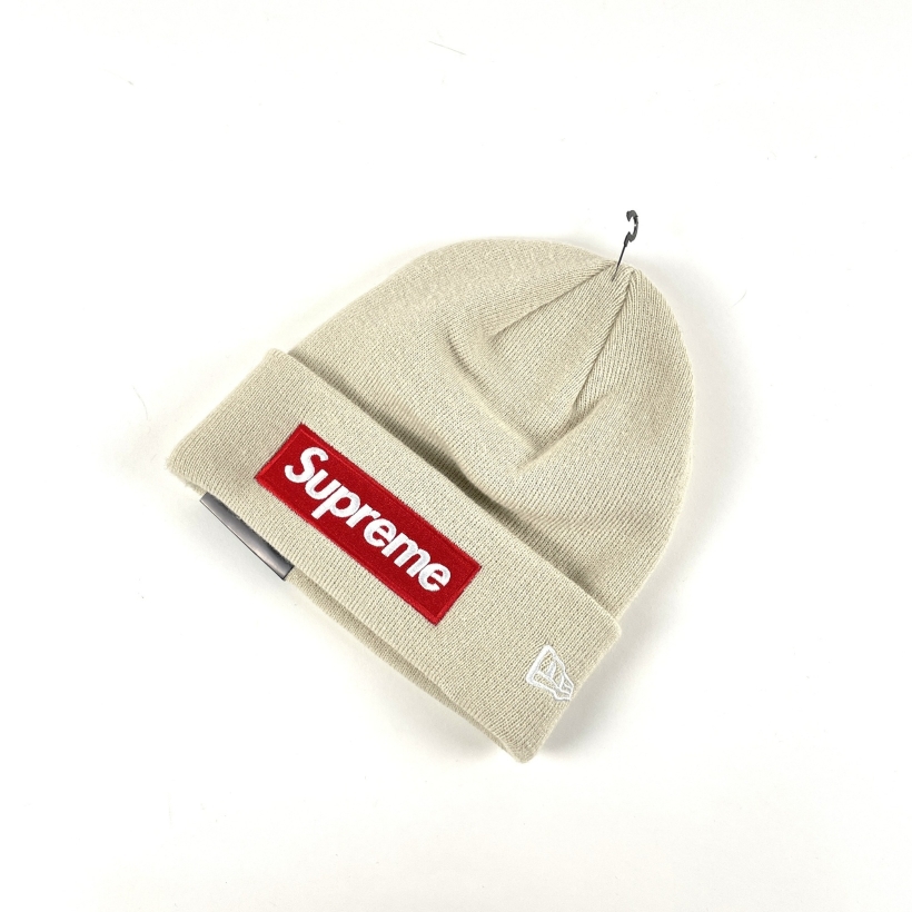 【入荷】SUPREME×NEW ERA 21/AW ニット帽 Fサイズ 別注モデル BOX LOGO BEANIE BEIGE タグ付
