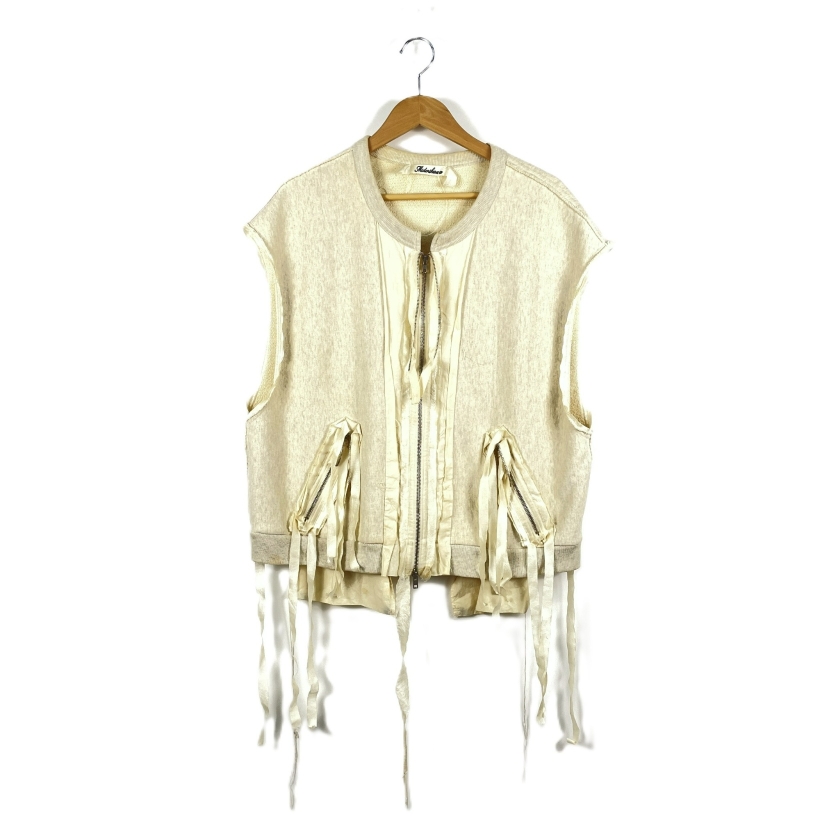 【入荷】MIDORIKAWA 19/SS MID19SS-CU02 ベスト Sサイズ DAMAGE CUT-OFF FULL-ZIP SWEAT VEST IVORY