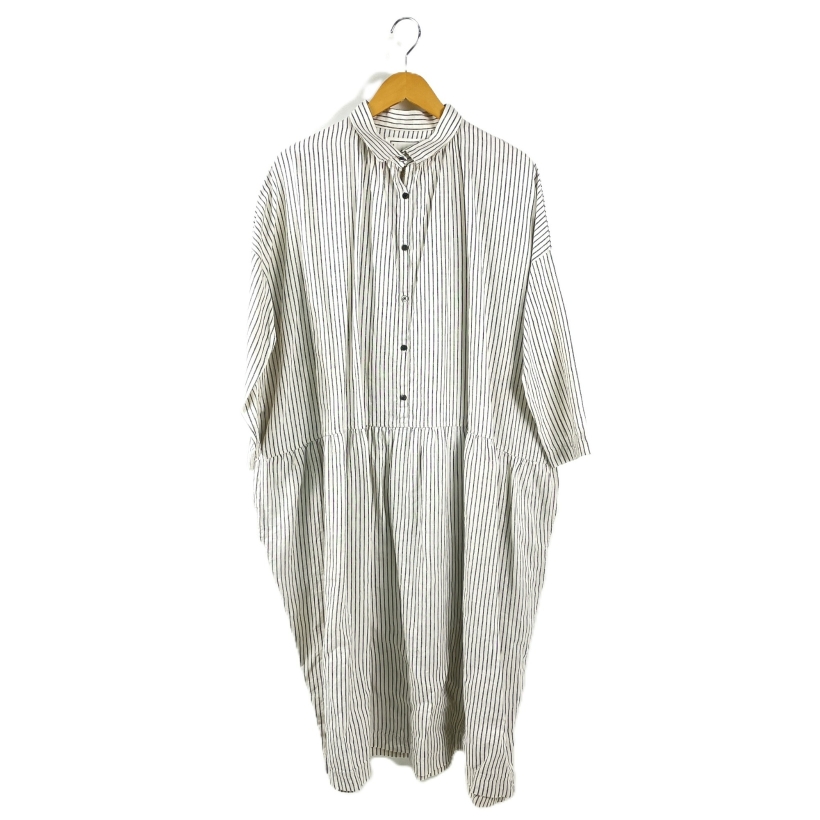 【入荷】ICHI ANTIQUITE'S K/T60504 ワンピース サイズ不明(表記なし) LINEN SHIRT ONE-PIECE ストライプ柄 WHITE/GRAY