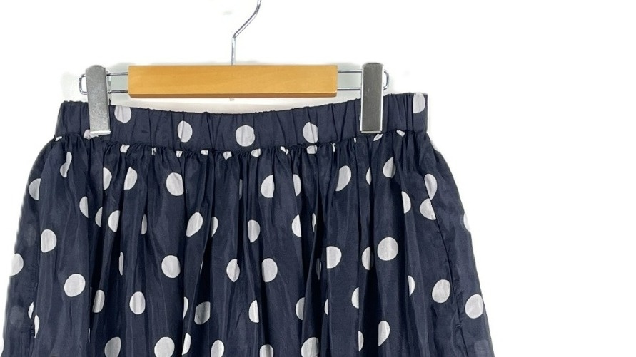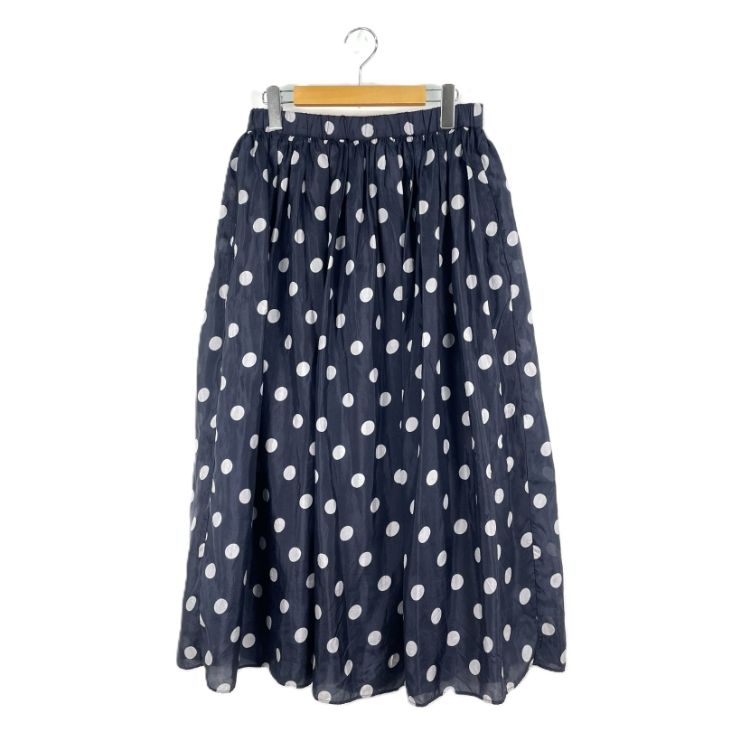 【入荷】MAISON DE SOIL ロングスカート サイズ2(Mサイズ程度) SILK FLARE LONG SKIRT ドット柄 NAVY/GRAY