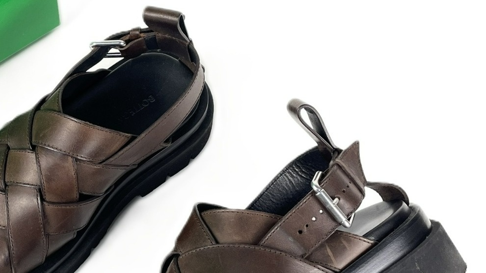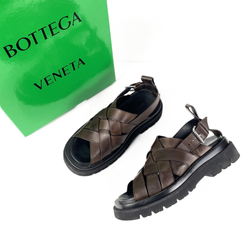 【入荷】BOTTEGA VENETA 755129 サンダル サイズ43(28.5cm程度) LEATHER LUG SANDAL BROWN 箱・保存袋付