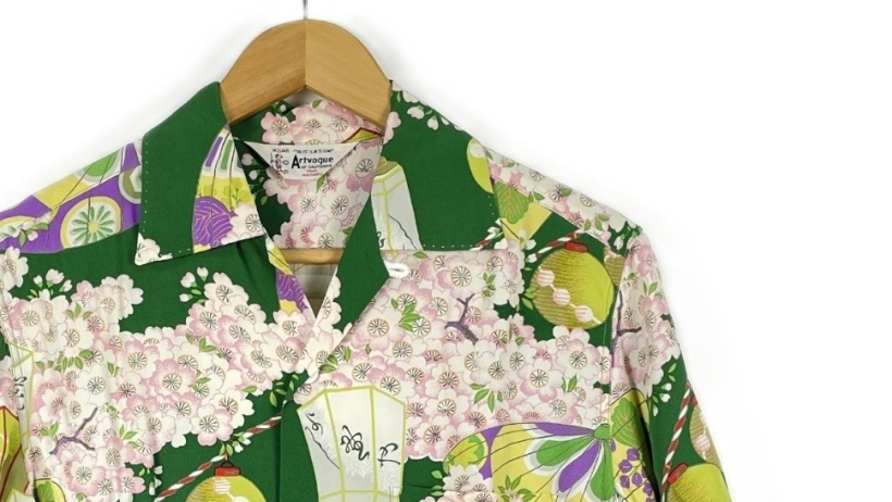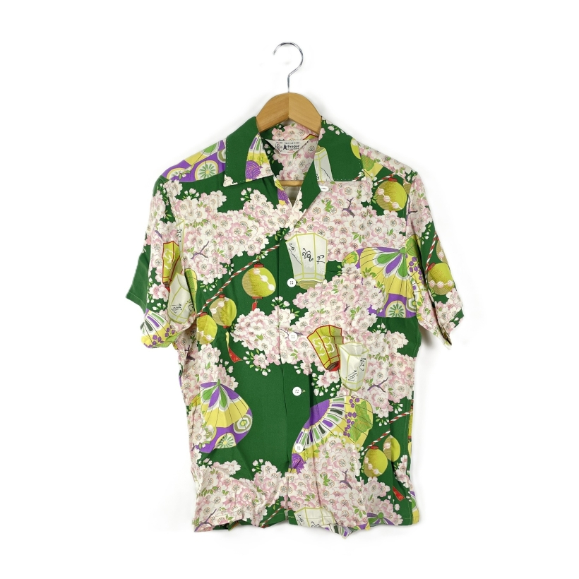 【入荷】SUN SURF 2007 SS33563 半袖シャツ Sサイズ SAKURA FESTIVAL 和柄 GREEN タグ・箱付