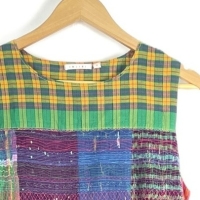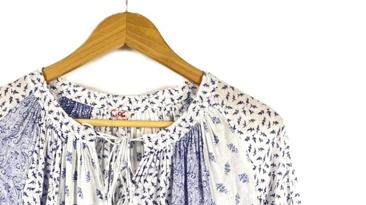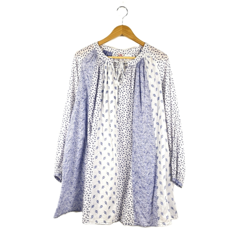 【入荷】45R 長袖シャツ サイズ2(Mサイズ程度) L/S GATHER TUNIC SHIRT 総柄 BLUE/WHITE