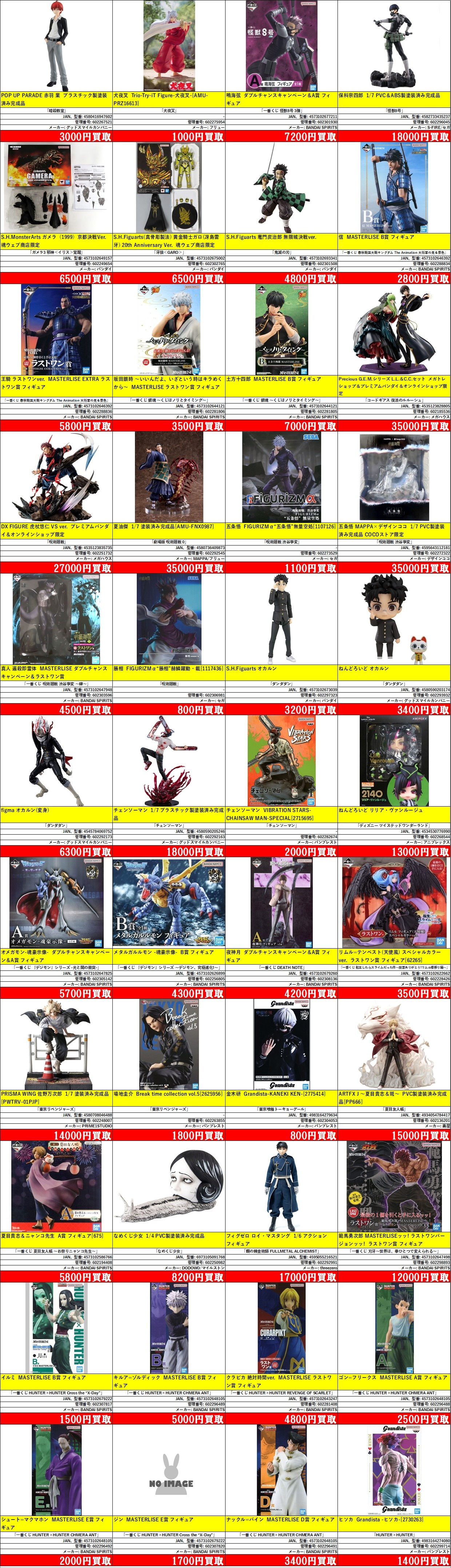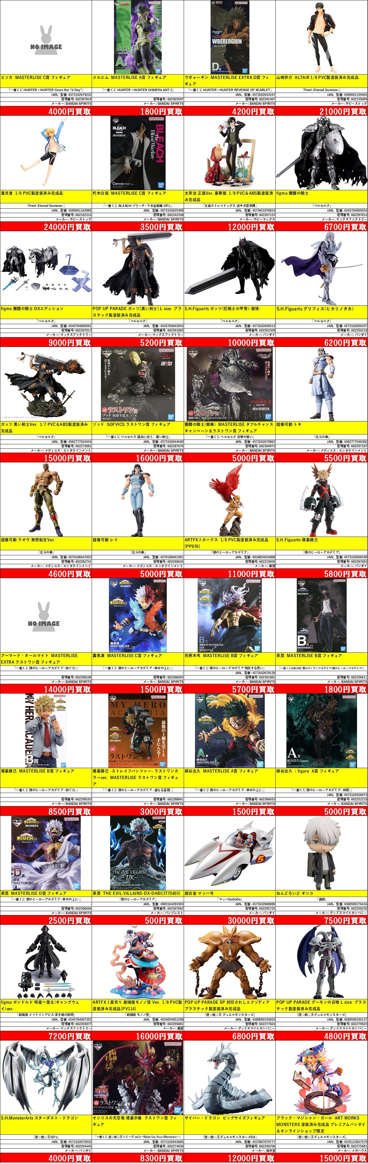 掲載価格は完品美品の買取価格です。品物の状態、在庫状況や市場価格によって買取価格は変動します。掲載アイテムはあらかじめ分けてお持ち込みください。