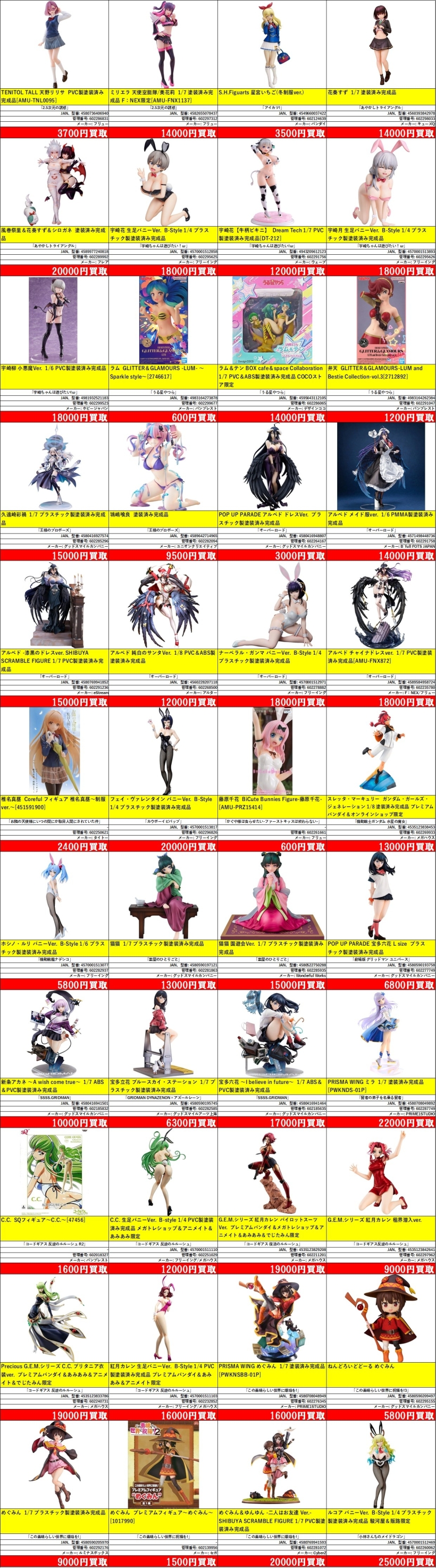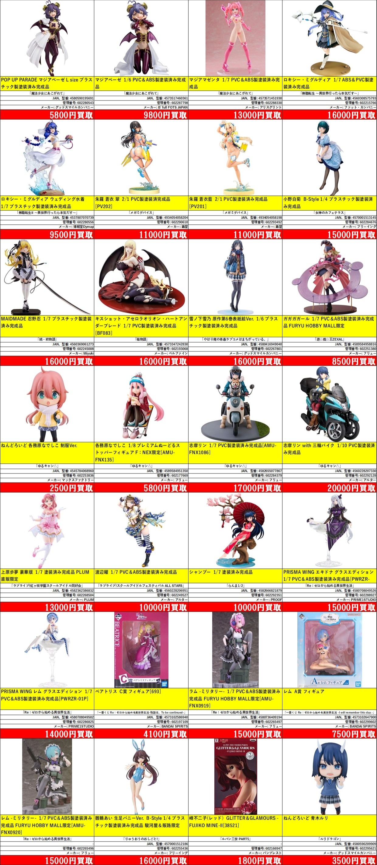 掲載価格は完品美品の買取価格です。品物の状態、在庫状況や市場価格によって買取価格は変動します。掲載アイテムはあらかじめ分けてお持ち込みください。