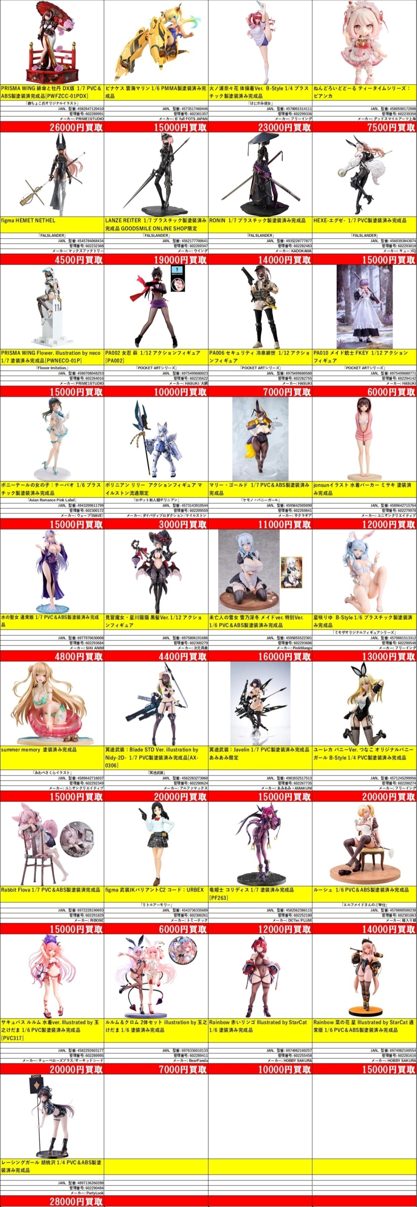 掲載価格は完品美品の買取価格です。品物の状態、在庫状況や市場価格によって買取価格は変動します。掲載アイテムはあらかじめ分けてお持ち込みください。