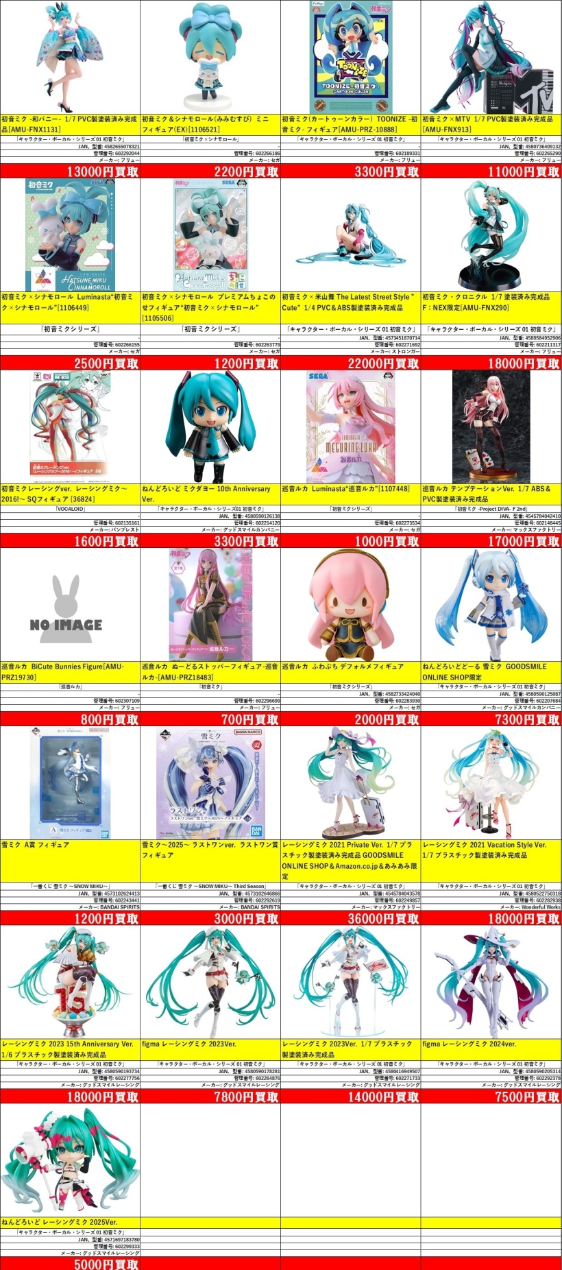 | 602266155 | 初音ミク×シナモロール Luminasta“初音ミク×シナモロール” | 「初音ミクシリーズ」 | [1106449] | セガ | - | ¥2,500 |