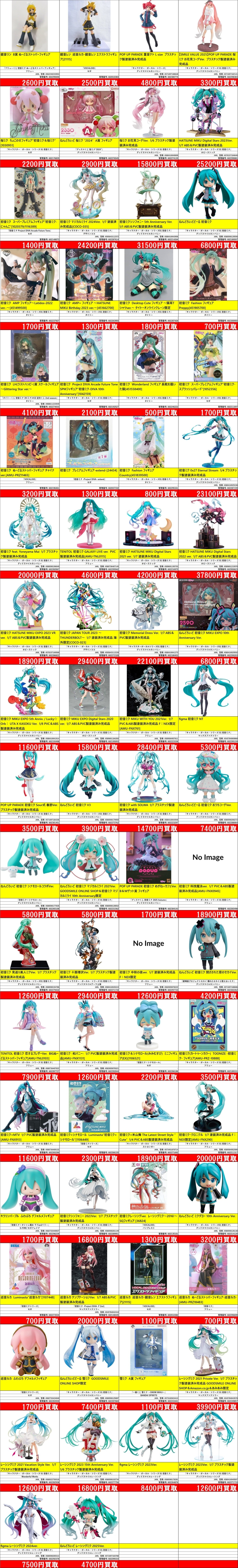 掲載価格は完品美品の買取価格です。品物の状態、在庫状況や市場価格によって買取価格は変動します。掲載アイテムはあらかじめ分けてお持ち込みください。
