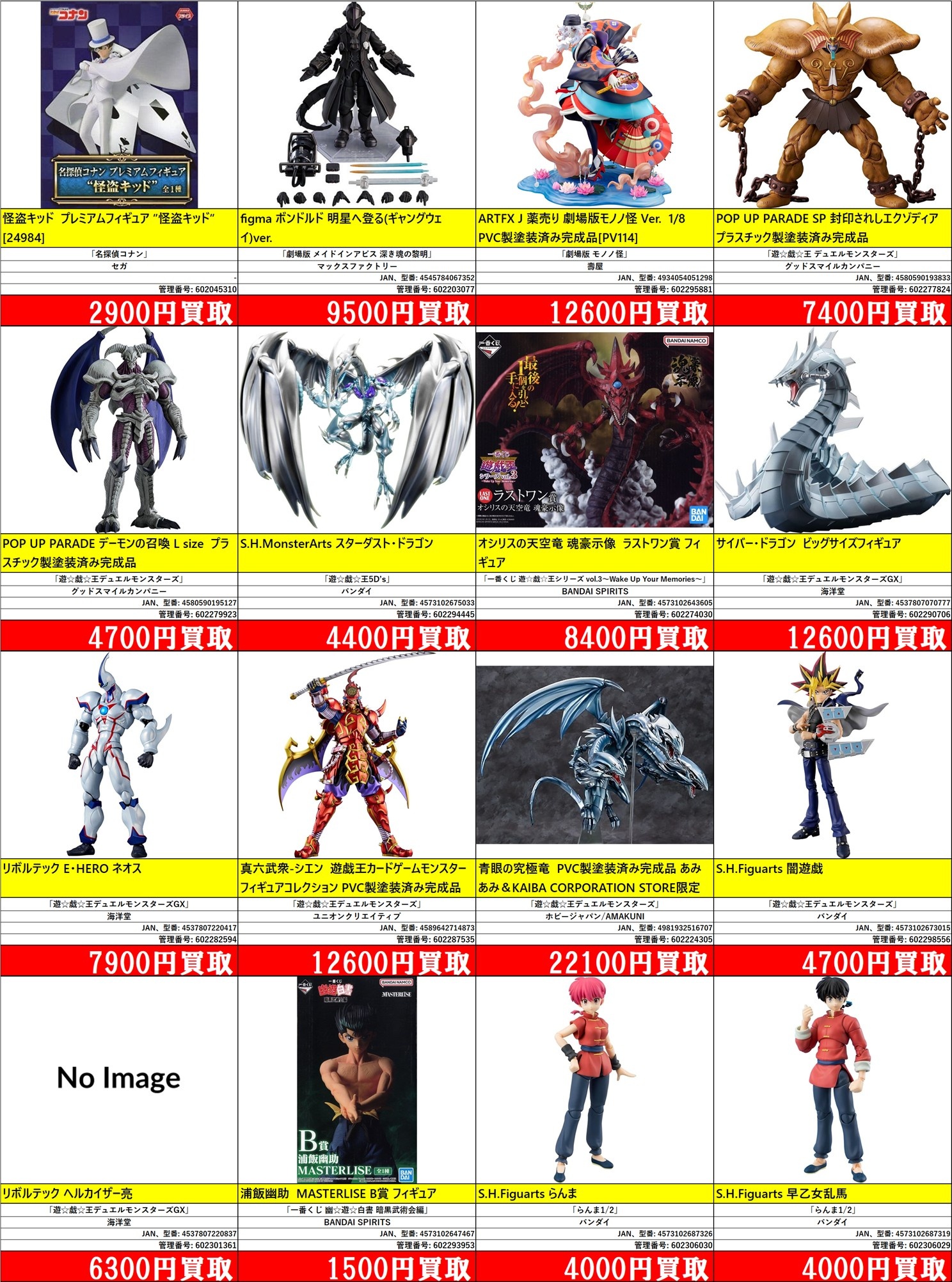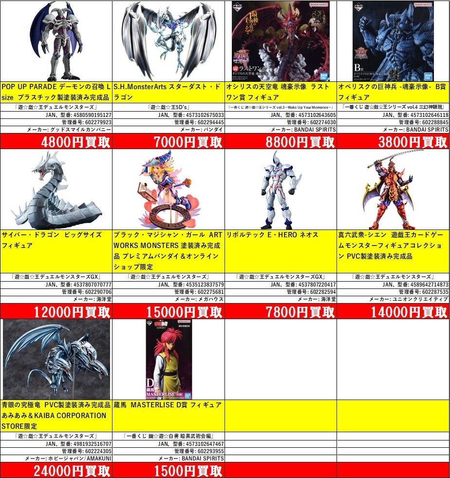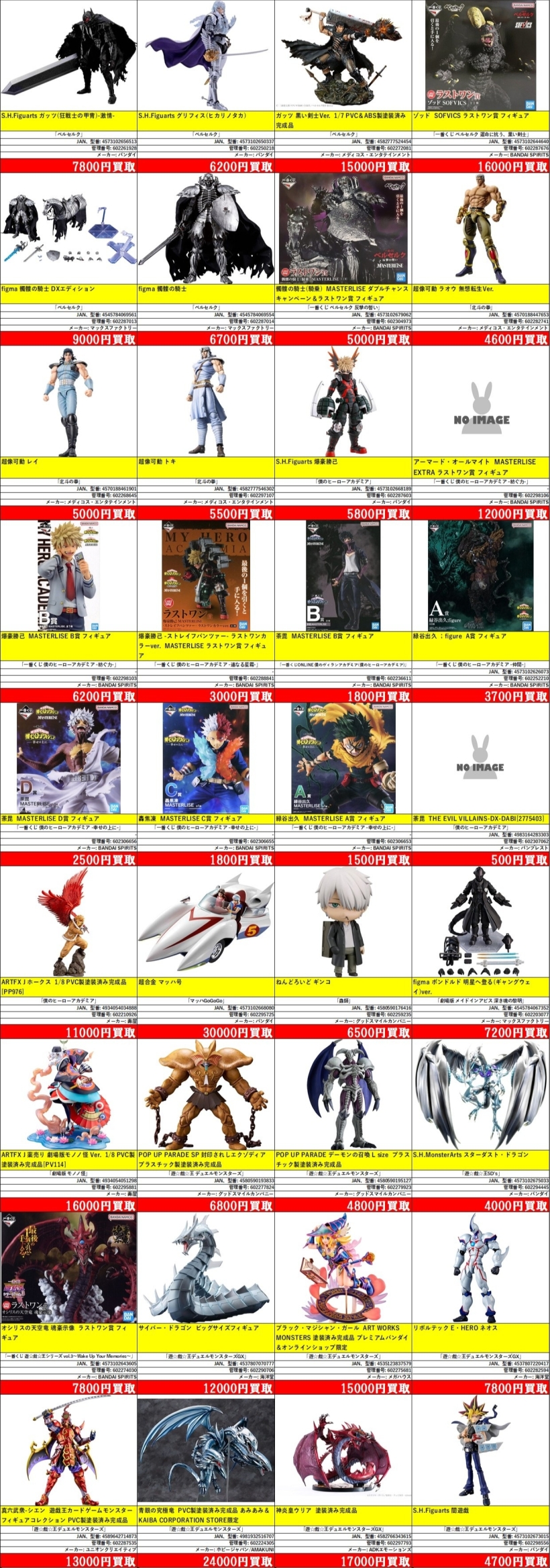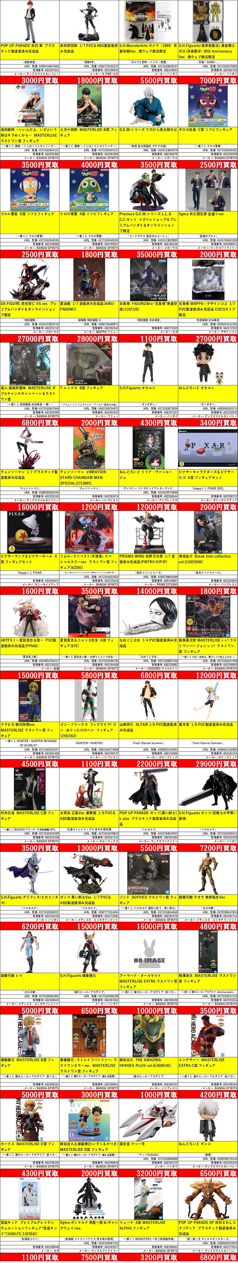 掲載価格は完品美品の買取価格です。品物の状態、在庫状況や市場価格によって買取価格は変動します。掲載アイテムはあらかじめ分けてお持ち込みください。