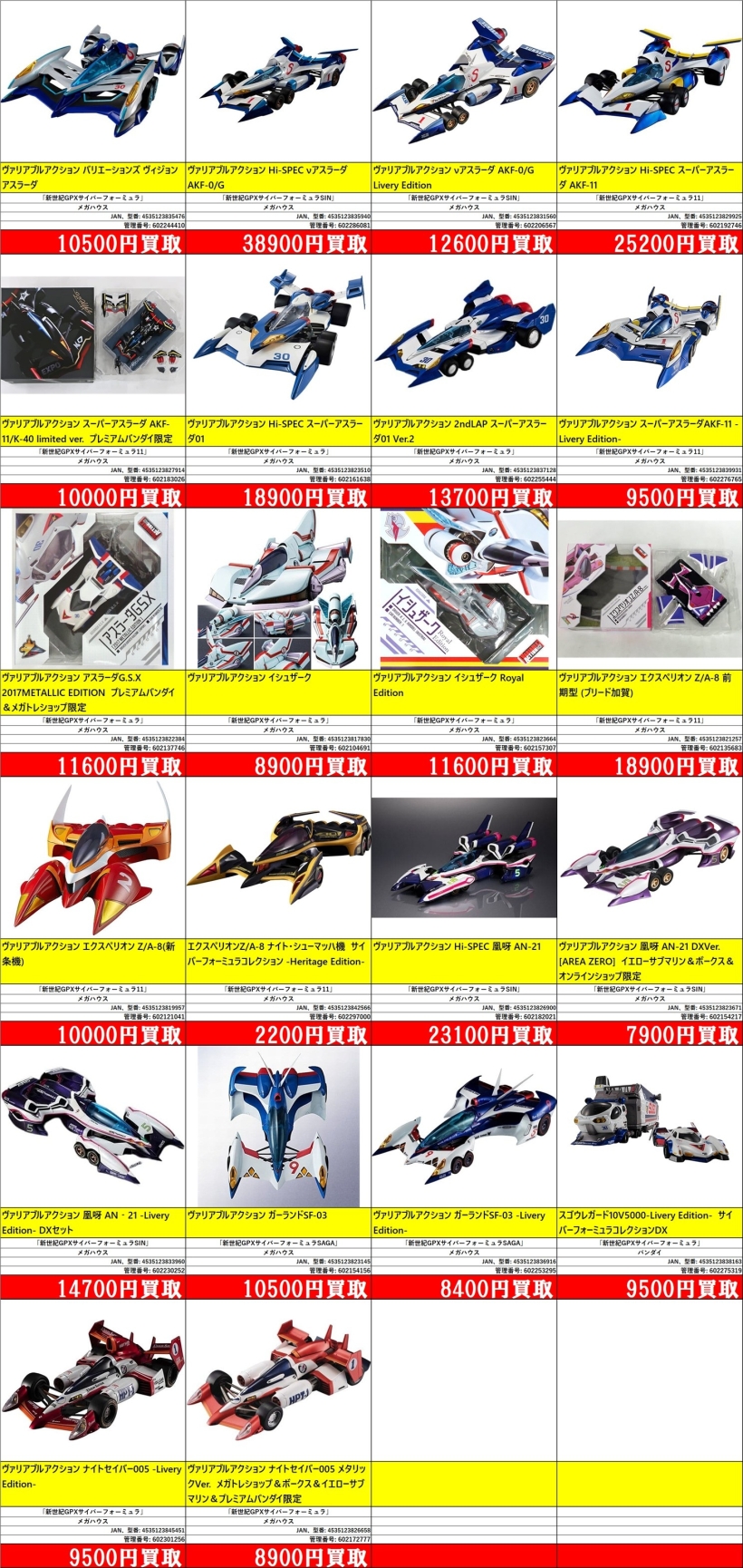 | 602137746 | ヴァリアブルアクション アスラーダG.S.X 2017METALLIC EDITION プレミアムバンダイ&メガトレショップ限定 | 「新世紀GPXサイバーフォーミュラ」 | [-] | メガハウス | 4535123822384 | ¥11,600 |