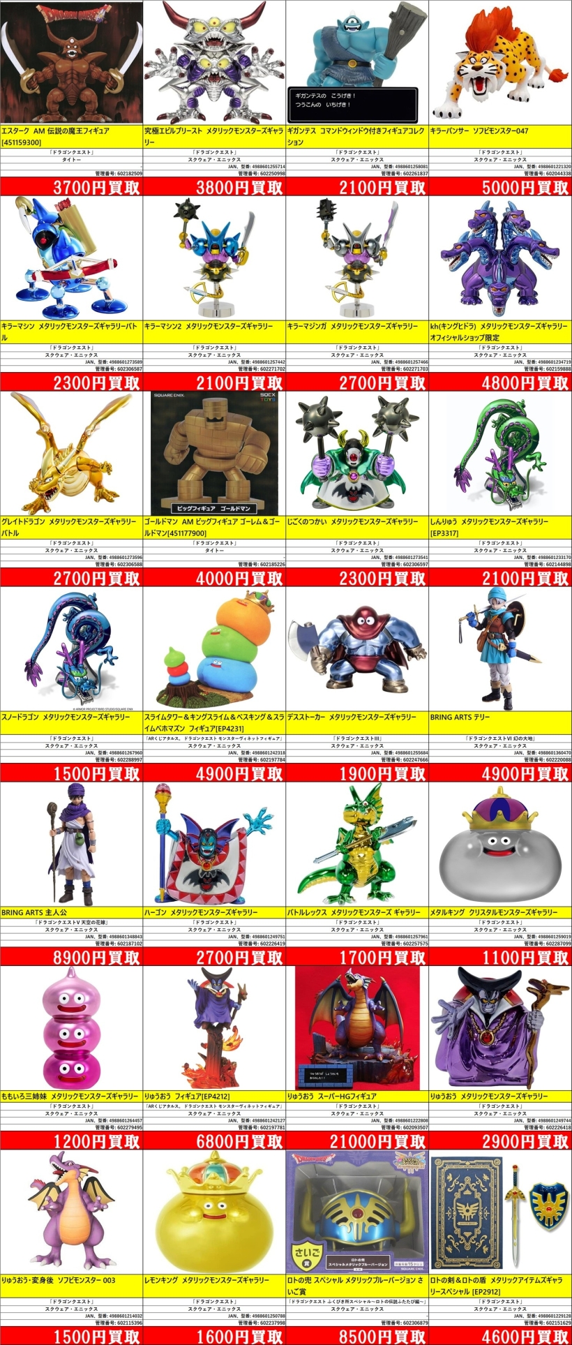 | 602226418 | りゅうおう メタリックモンスターズギャラリー | 「ドラゴンクエスト」 | [-] | スクウェア・エニックス | 4988601249744 | ¥2,900 |