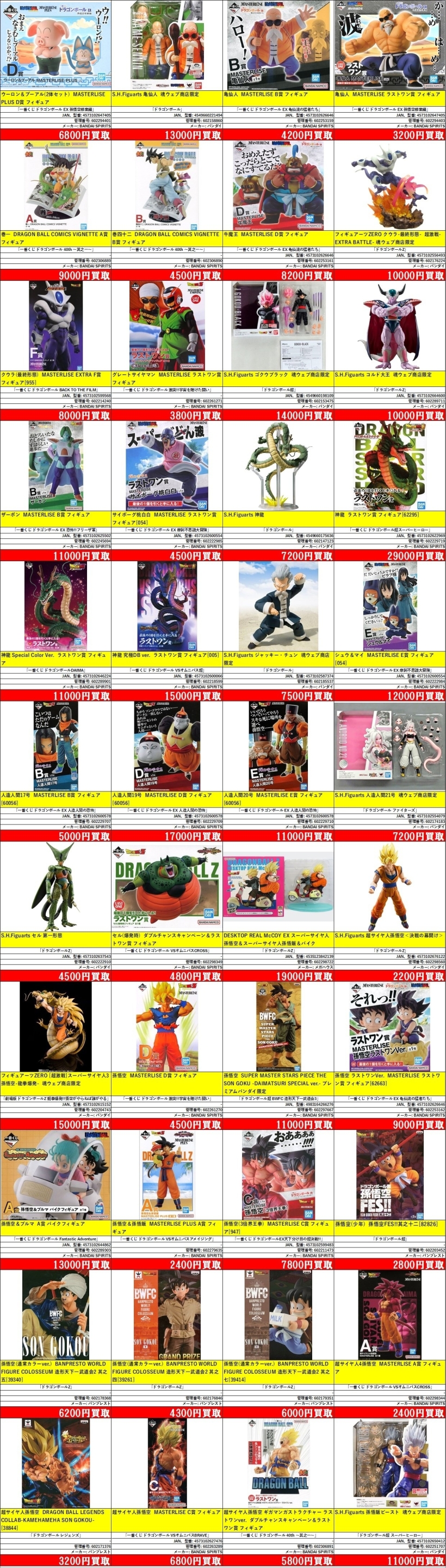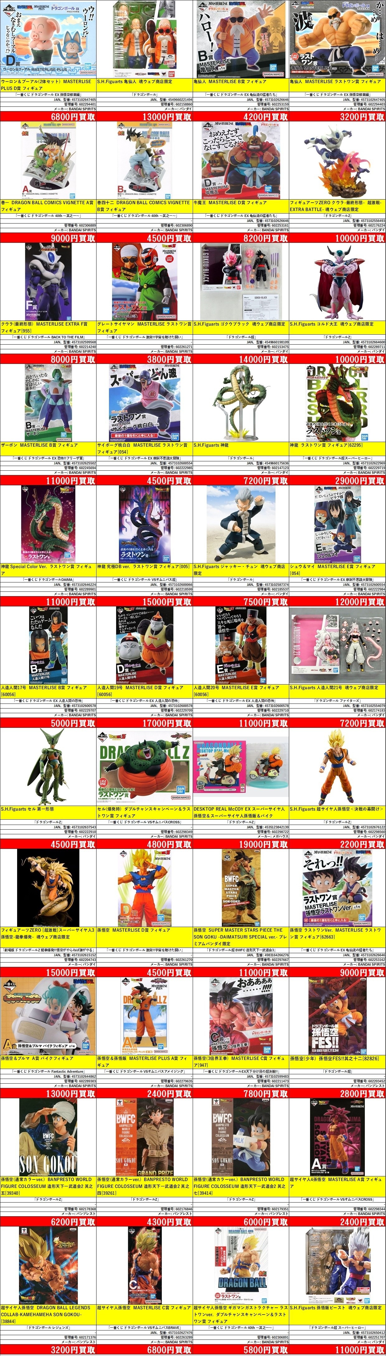 | 602294403 | 亀仙人 MASTERLISE ラストワン賞 フィギュア | 「一番くじ ドラゴンボール EX 孫悟空修業編」 | [-] | BANDAI SPIRITS | 4573102647405 | ¥3,200 |