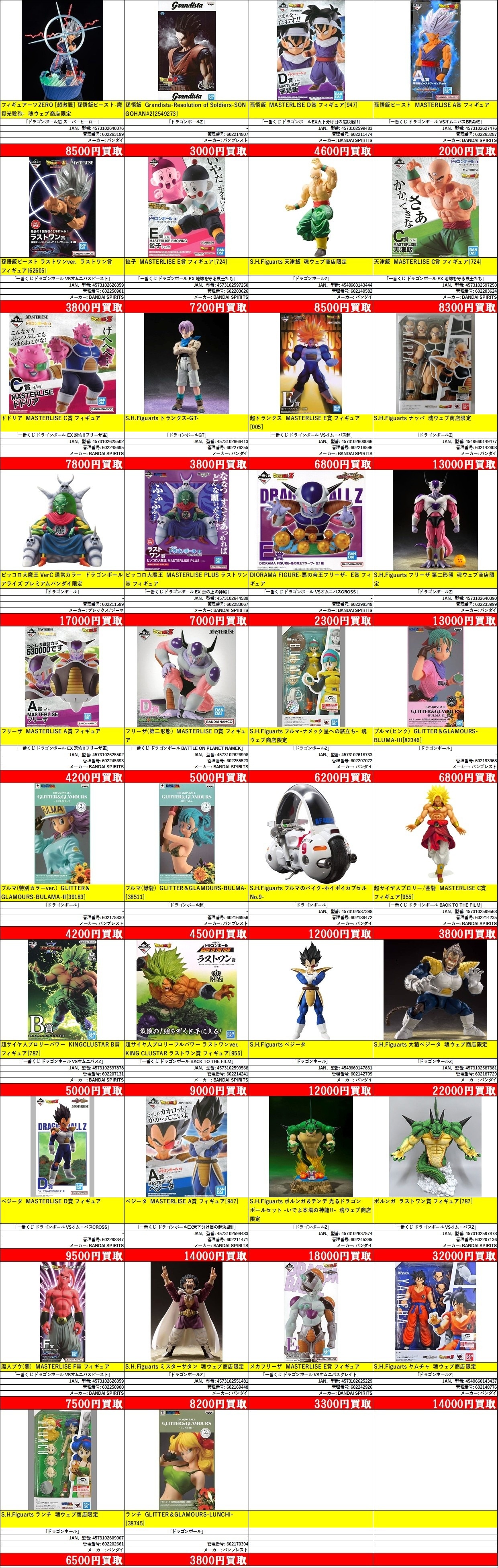 | 602202661 | S.H.Figuarts ランチ 魂ウェブ商店限定 | 「ドラゴンボール」 | [-] | バンダイ | 4573102609007 | ¥6,500 |