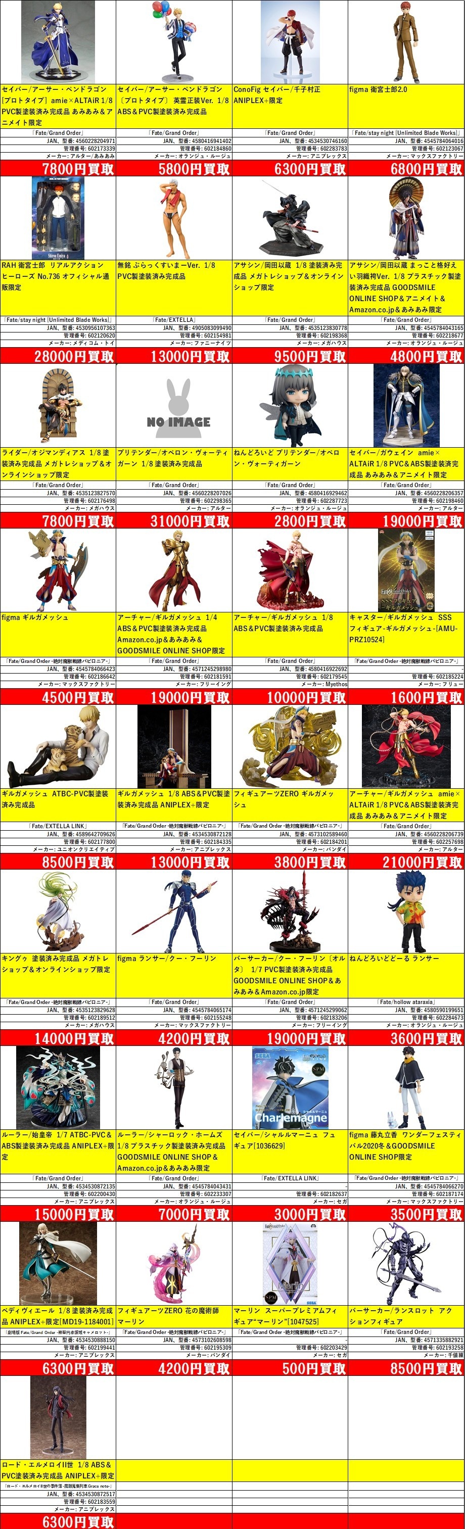 掲載価格は完品美品の買取価格です。品物の状態、在庫状況や市場価格によって買取価格は変動します。掲載アイテムはあらかじめ分けてお持ち込みください。