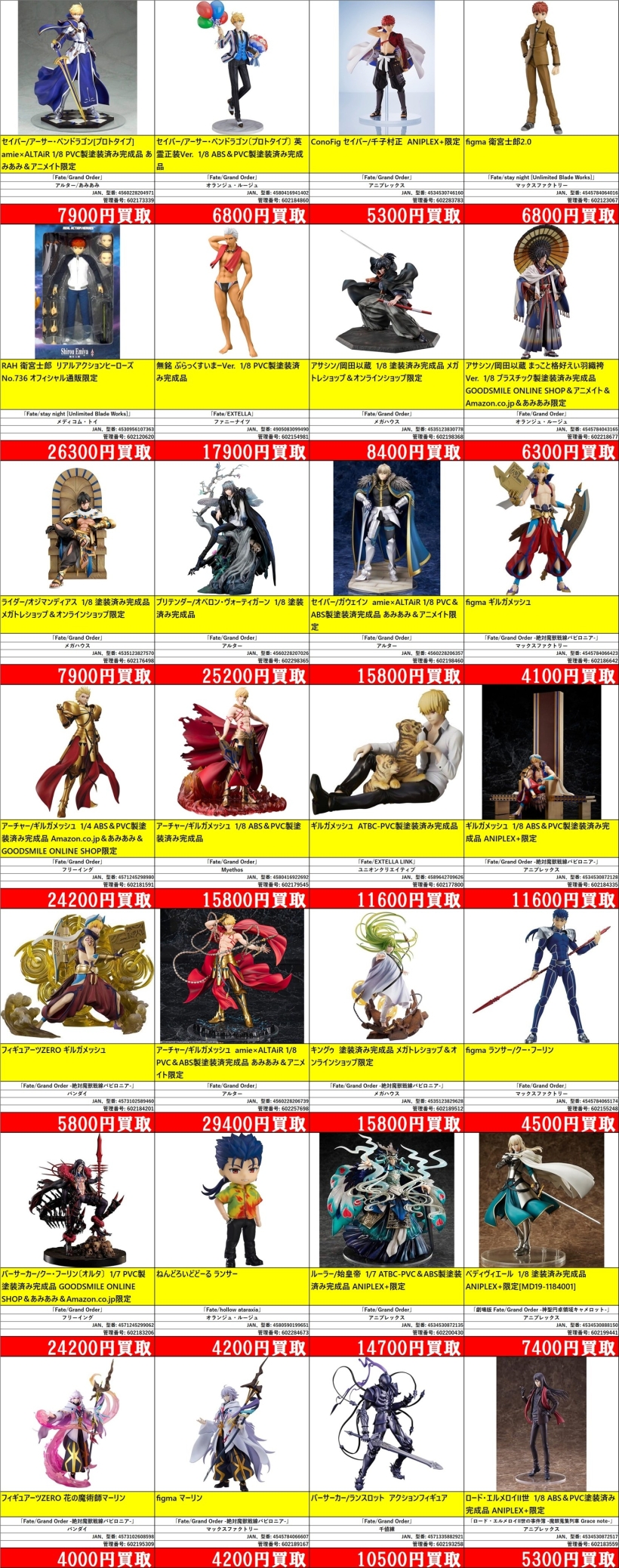 | 602257698 | アーチャー/ギルガメッシュ amie×ALTAiR 1/8 PVC&ABS製塗装済完成品 あみあみ&アニメイト限定 | 「Fate/Grand Order」 | [-] | アルター | 4560228206739 | ¥29,400 |