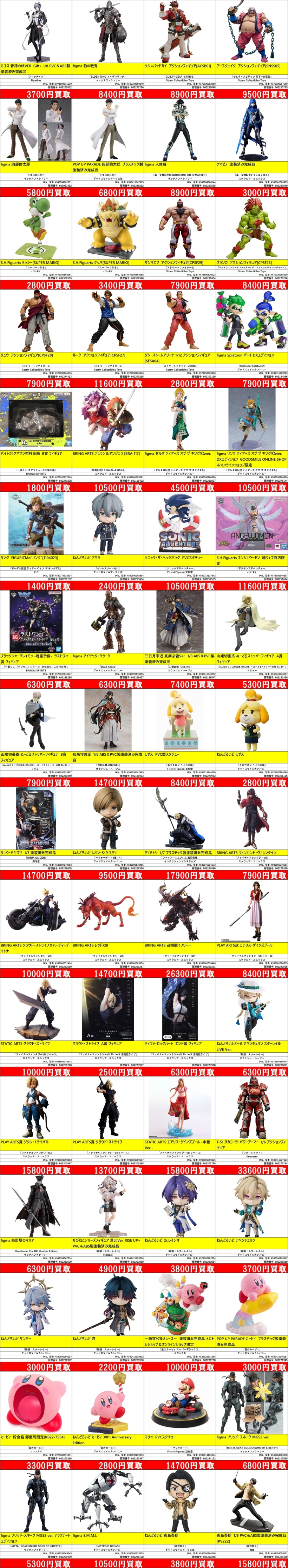 掲載価格は完品美品の買取価格です。品物の状態、在庫状況や市場価格によって買取価格は変動します。掲載アイテムはあらかじめ分けてお持ち込みください。