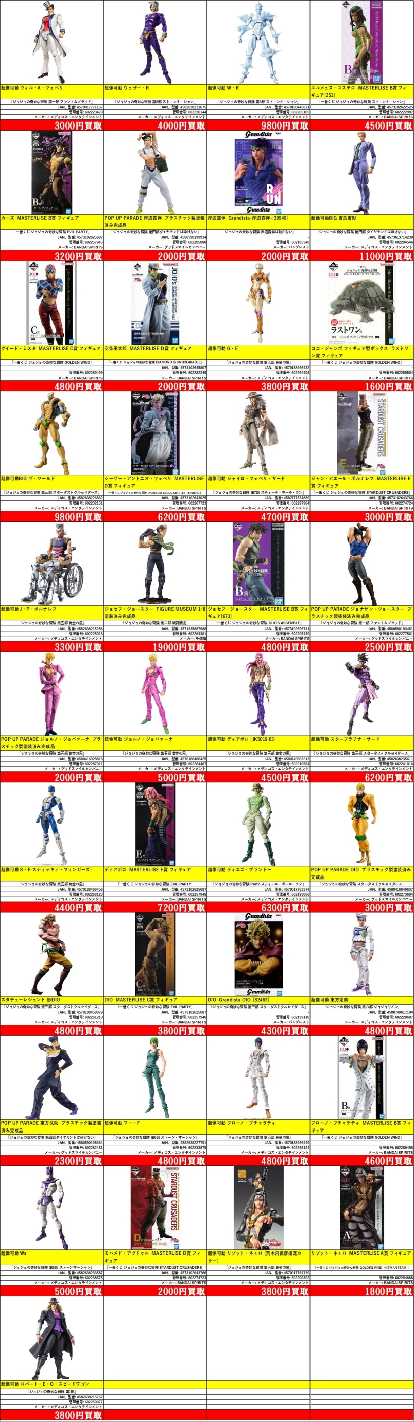 | 602199110 | DIO Grandista-DIO- | 「ジョジョの奇妙な冒険 第三部 スターダストクルセイダース」 | [82463] | バンプレスト | - | ¥4,300 |