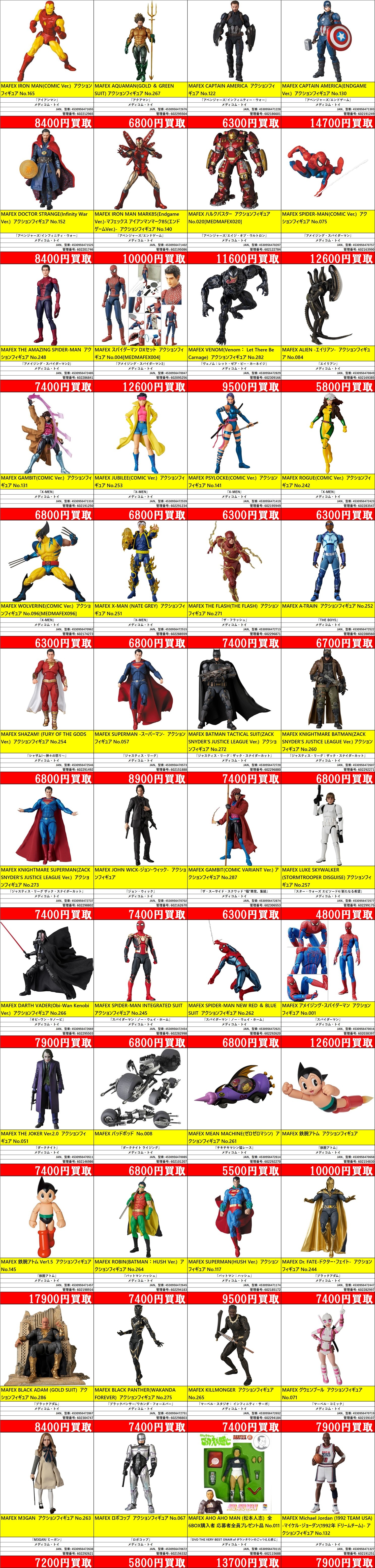 掲載価格は完品美品の買取価格です。品物の状態、在庫状況や市場価格によって買取価格は変動します。掲載アイテムはあらかじめ分けてお持ち込みください。